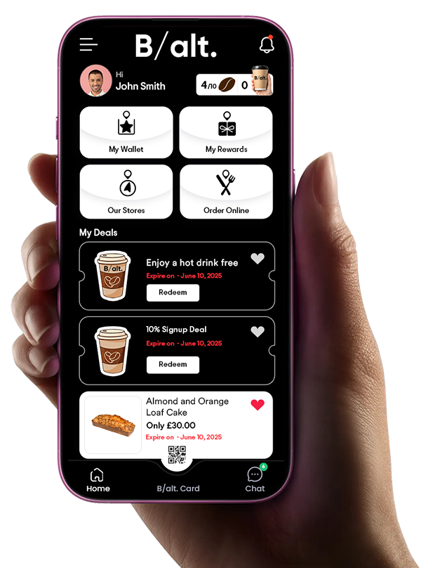 Be part of the B/alt bakery community. Collect points, redeem rewards, get exclusive deals and Click & Collect your orders for your favourite items. All with the easy-to-use B/alt Artisan Bakery app